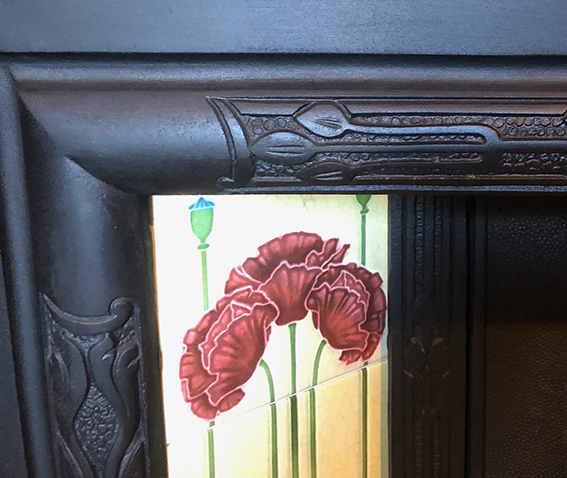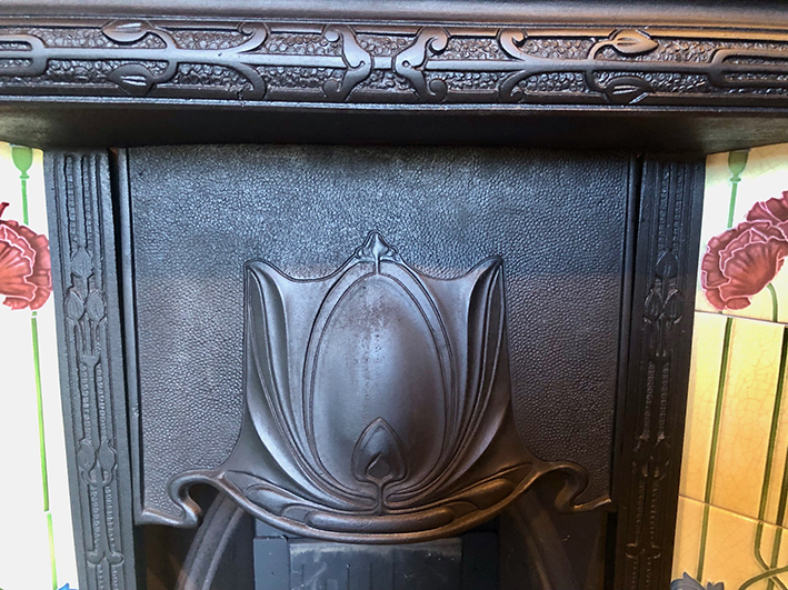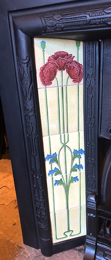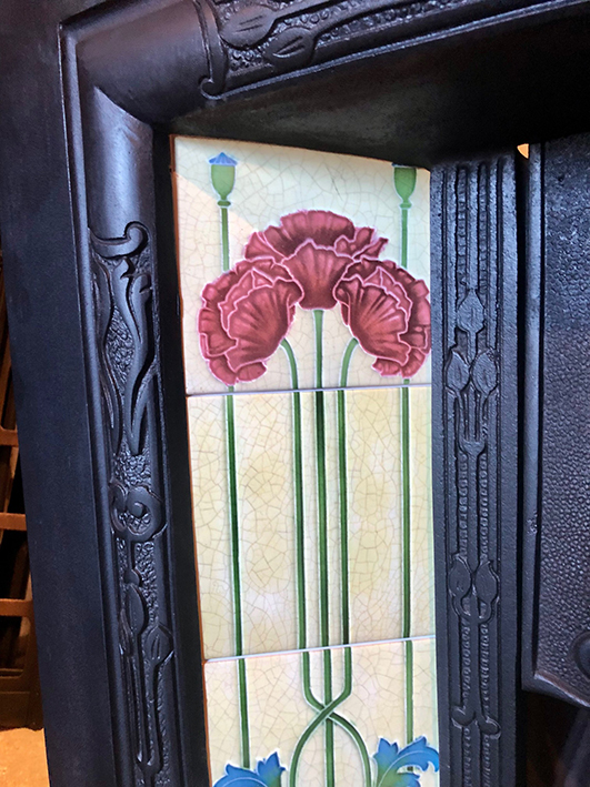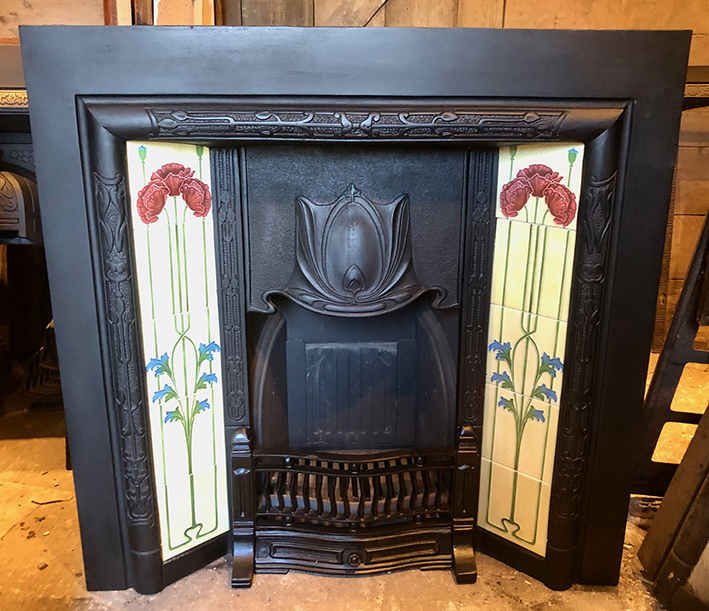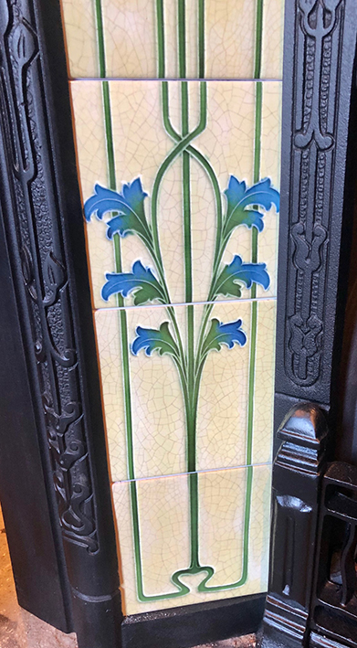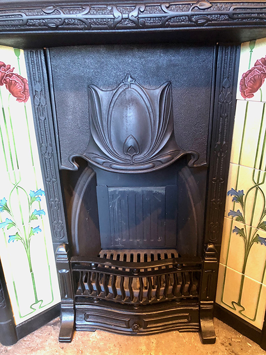 Antique Art Nouveau tiled cast iron fireplace insert ref i902